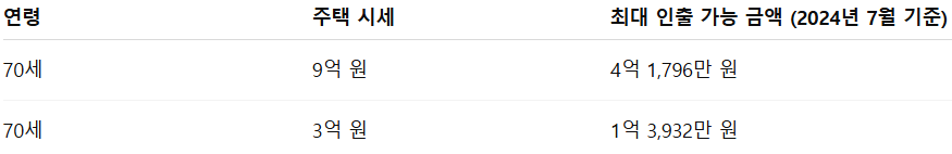 실제 사례: 연령과 주택 시세에 따른 인출 가능 금액