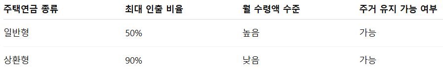 일반형 주택연금과 상환형 주택연금의 수령액 차이